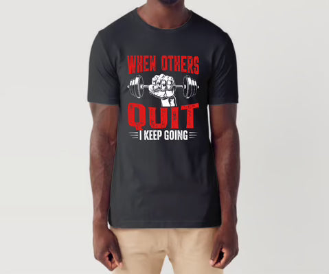 Introducing our 'When Others Quit, I Keep Going!' t-shirt, a bold declaration of resilience and determination. Made for those who refuse to give up, this tee embodies the spirit of perseverance in the face of challenges. Crafted with premium quality material for comfort and durability, it's more than just a shirt—it's a statement of strength. Wear it proudly as a reminder to yourself and inspiration to others that quitting is never an option. Keep pushing forward, keep striving, and let this shirt be your symbol of unwavering resolve. Get yours now and show the world what persistence looks like!
